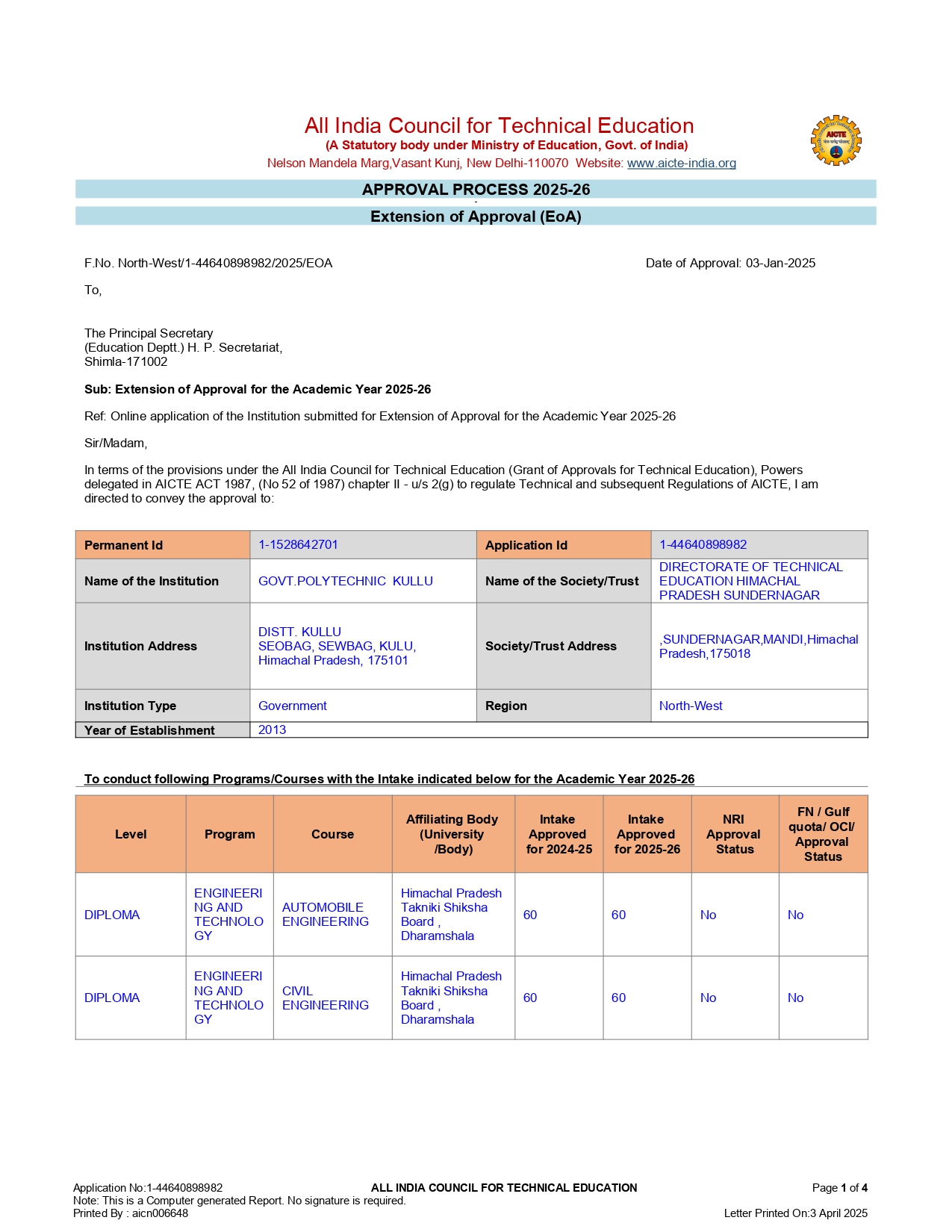 V.P.O. Shamshi Teshil Bhuntar Distt. Kullu |